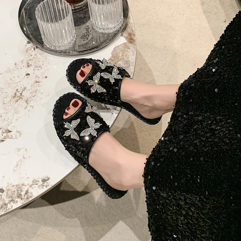 🌟 Flutter into the spotlight—this whimsical sandal flaunts a butterfly adorned in dazzling sequins that shimmer with every step you take.